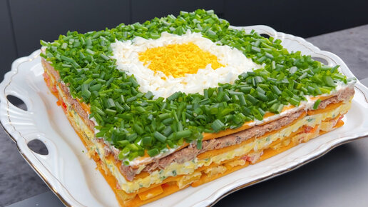 Закусочный торт-салат с тунцом - украшение Новогоднего стола 2023!