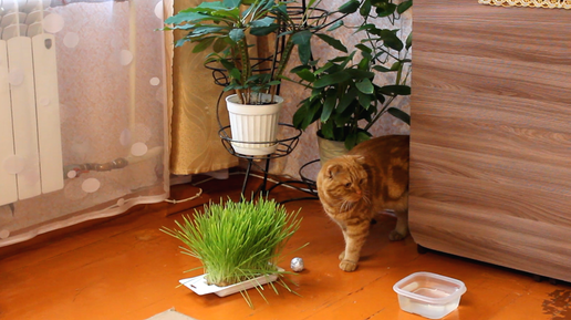Котик Бася, травка и серебряный шарик.