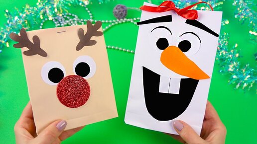 Весёлый ПАКЕТ ДЛЯ ПОДАРКА из 1 листа бумаги! Новогодние поделки для детей