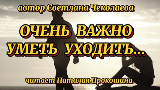 "ОЧЕНЬ ВАЖНО УМЕТЬ УХОДИТЬ" Автор Светлана Чеколаева. Читает Наталия Прокошина