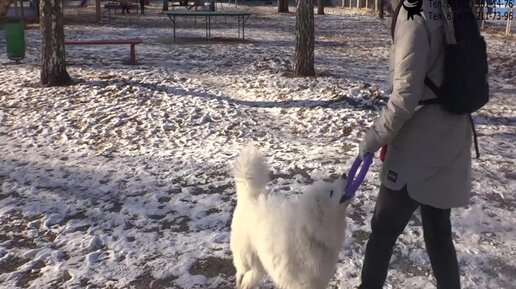 Дружкова Юлия и самоед Чандра. Занятие по дрессировке (ОКД): учим собаку команде Рядом. Тольятти, 13 декабря 2022.