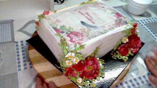 Оформление торта книга цветами из крема_How to make a cake book with flowers from cream