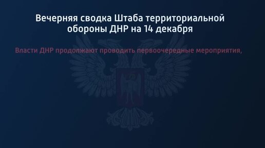 Вечерняя сводка Штаба территориальной обороны ДНР на 14 декабря 2022 года