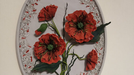 Панно "Маки". Кожа
