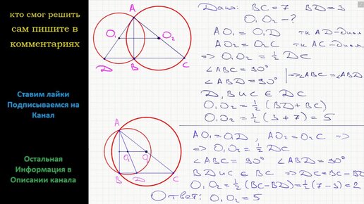 Геометрия Две окружности пересекаются в точках A и B. Через точку A проведены диаметры AC и AD этих окружностей. Найдите расстояние между