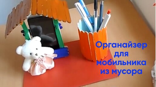 Удивительная идея как сделать из палочек для мороженного органайзер для мобильного телефона.