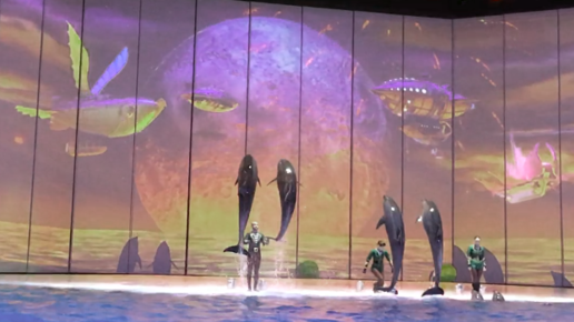 Трюки дельфинов в премьере шоу Океанариума в Москве