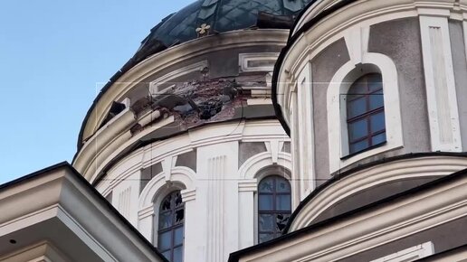 Свято-Преображенский собор в Донецке после того, как в его купол попал один из украинских снарядов