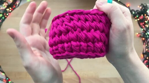 Узор рыбья кость вяжем крючком из трикотажной пряжи для корзинки, сумки или ковра