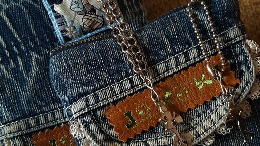 Джинсовый комплект для рюкзака. Чехол для телефона и чехол для наушников. История джинсового сундучка №2