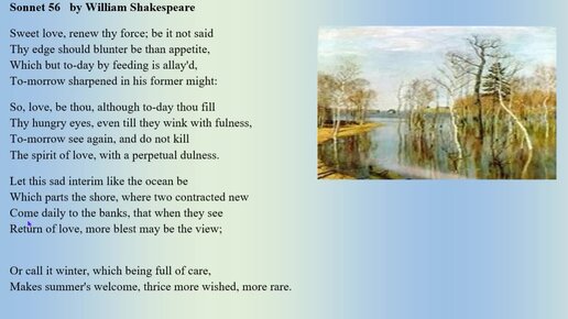 Уи́льям Шекспи́р. Сонет №56. Poems. William Shakespeare. Sonnet 56.