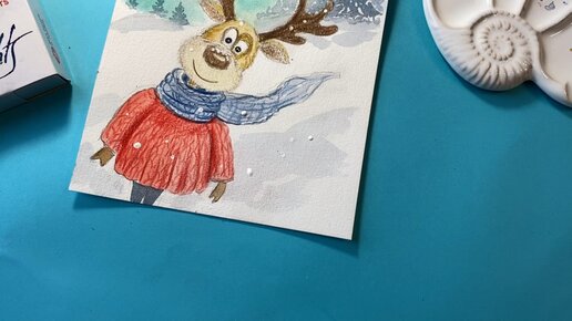 Новогодняя открытка акварелью. Олень на фоне северного сияния #акварельдляначинающих #рисуемкаждыйдень #рисоватьпросто #рисуемсдетьми