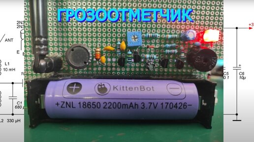 Грозоотметчик (детектор молний) на четырёх транзисторах (Lightning Detector) ночью.