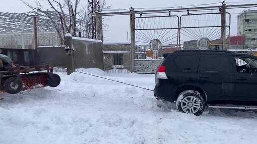 Будни тракториста: крузак вытаскивает застрявший трактор