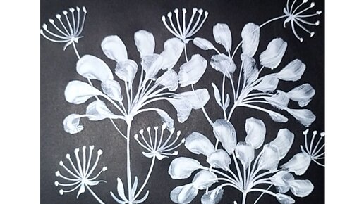 Цветочная композиция, нарисованный белой гуашью на черной бумаге.