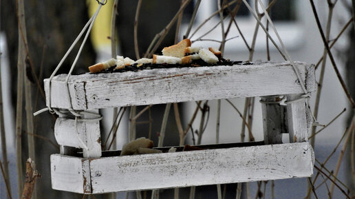 Кормушка в парке. Наблюдения. Обыкновенная лазоревка и большая синицы.