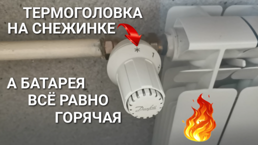 Термоголовка стоит на снежинке, но радиатор отопления всё равно очень горячий