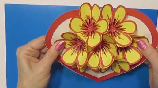 Поздравительная 3 Д открытка с цветами_ Сувенир своими руками на 8 марта_мастер