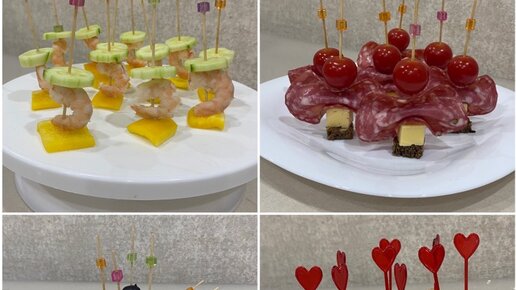 Закуски на шпажках. Канапе. 4 вида в одном видео