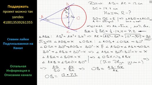 Геометрия Из одной точки проведены к окружности две касательные, длина каждой из которых равна 12 см, а расстояние между точками касания