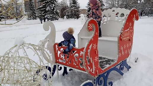 Брат с сестрой в снежных санях.Что же тут интересного.