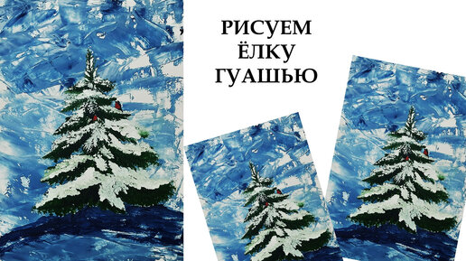Как легко нарисовать елку. Рисуем новогоднюю ёлочку гуашью. Елка в зимнем лесу. Картина для начинающих.