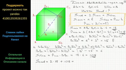 Геометрия Два ребра прямоугольного параллелепипеда, выходящие из одной вершины, равны 3 и 6. Диагональ параллелепипеда равна 9. Найдите