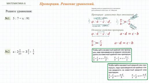 Пропорции. Решение уравнений. 6 класс