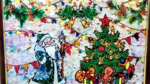 Сверкающая новогодняя картина на стекле своими руками