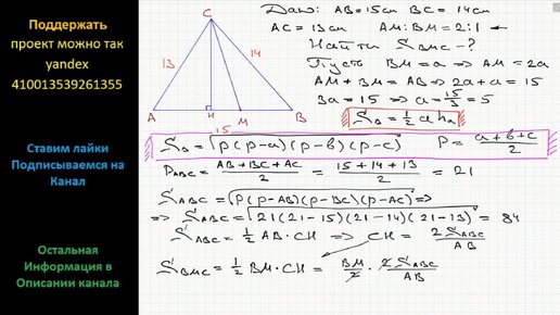 Геометрия В треугольнике АВС известны длины сторон АВ = 15 см, ВС = 14 см, АС = 13 см. точка М делит сторону АВ в отношении АМ : МВ = 2 : 1