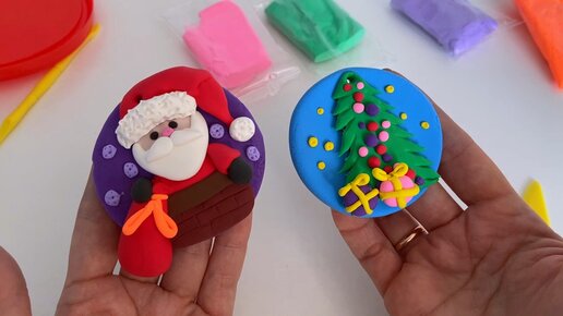 игрушки на елку из воздушного пластилина! 🎅🏼🎄 можно повесить на елочку, а можно украсить открытку🫶🏻 Лепите 🙌🏻#елочныеигрушки #воздушныйпластилин