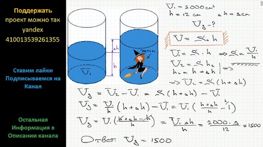 Геометрия В цилиндрический сосуд налили 2000 см3 воды. Уровень жидкости оказался равным 12 см. В воду полностью погрузили деталь. При этом