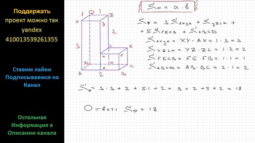 Геометрия Найдите площадь поверхности многогранника (все двугранные углы прямые).