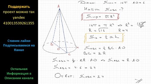 Геометрия Площадь основания конуса равна 16п, высота 6. Найдите площадь осевого сечения конуса