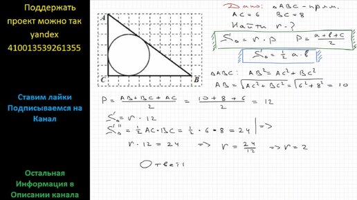 Геометрия Найдите радиус окружности, вписанной в треугольник АВС, если размер клетки 1 см х 1 см. Ответ дайте в сантиметрах