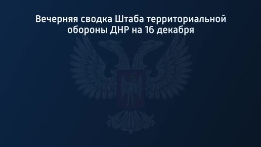 Вечерняя сводка Штаба территориальной обороны ДНР на 16 декабря 2022 года