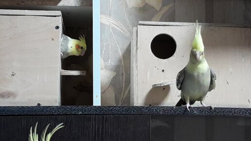 Птенец корелла одной лапой на свободе, другой ещё в гнезде))) И хочется вылететь, и страшно))