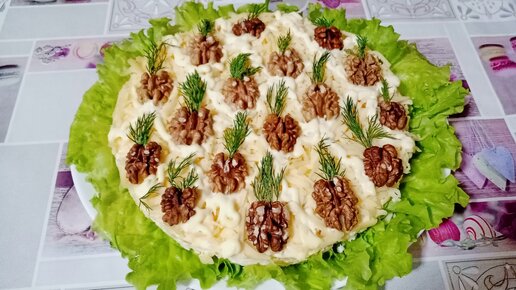 Слоёный салат с курицей и ананасом на новогодний стол 2025