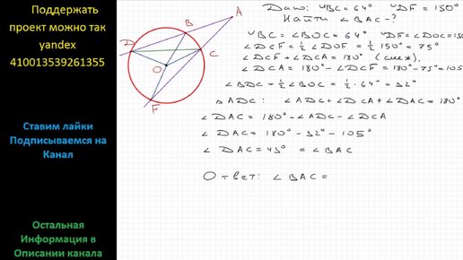 Геометрия Найдите острый угол образованный двумя секущими проведенными из точки лежащей вне окружности если дуги заключенные между секущими