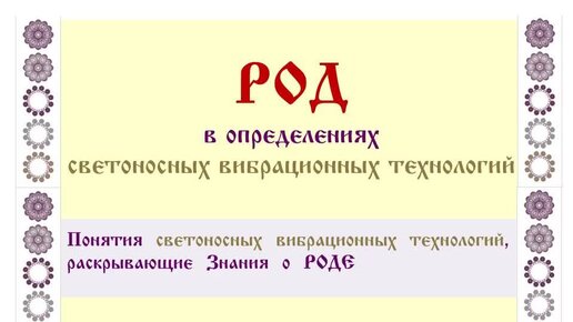 Понятия определяющие РОД в светоносных вибрационных технологиях Часть 1