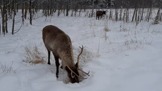 СЕВЕРНЫЕ ОЛЕНИ КОПЫТЯТ СНЕГ