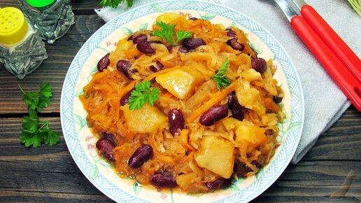 Простое и универсальное блюдо. Капуста, тушенная с фасолью.