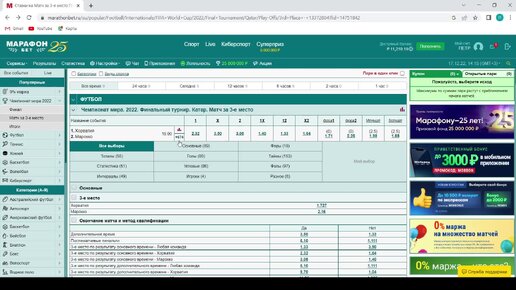 Ставки на матч за третье место чемпионата мира по футболу 2022