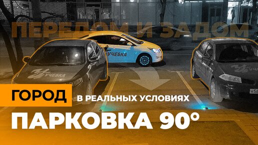 Парковка 90 градусов в городе в реальных условиях передом и задом с автоинструктором. Заезд из узкой полосы в узкую парковку. Ориентиры.