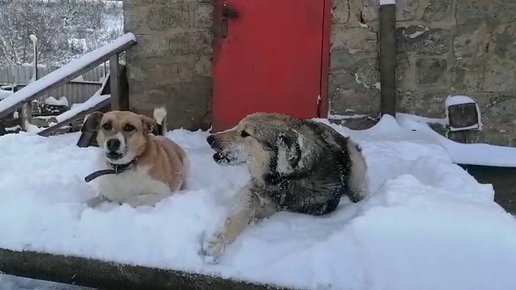 Зимние забавы. Собаки с передержки радуются снегу, как дети