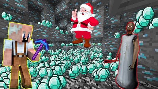 GRANDPA И БАБКА ГРЕННИ НОВОГОДНЕЕ ВЫЖИВАНИЕ #6 ДОБЫЛИ НОВОГОДНИЕ АЛМАЗЫ ДЛЯ ДЕДА МОРОЗА МАЙНКРАФТ