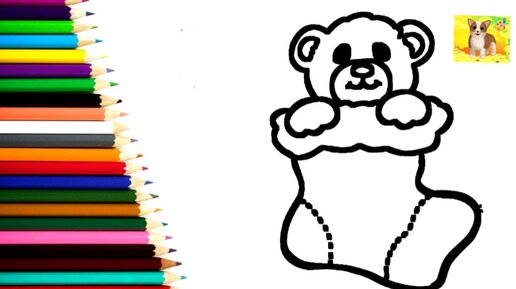 Как рисовать Мишку. Рисунок раскраска для детей Новогодний Мишка. Рисую забавные милые рисунки для детей