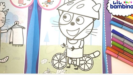 Три Кота - Гоня едет на велосипеде, раскраска для детей из мультика Три Кота. Канал Lil Bambino.