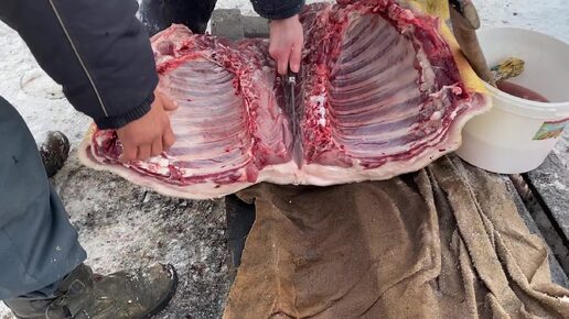 Забой венгерской Мангалицы! Свиноматка-2 года