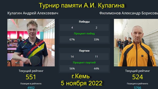 Встреча Кулагин А.-Филимонов А. Турнир по настольному теннису, г.Кемь 5-6 ноября 2022.